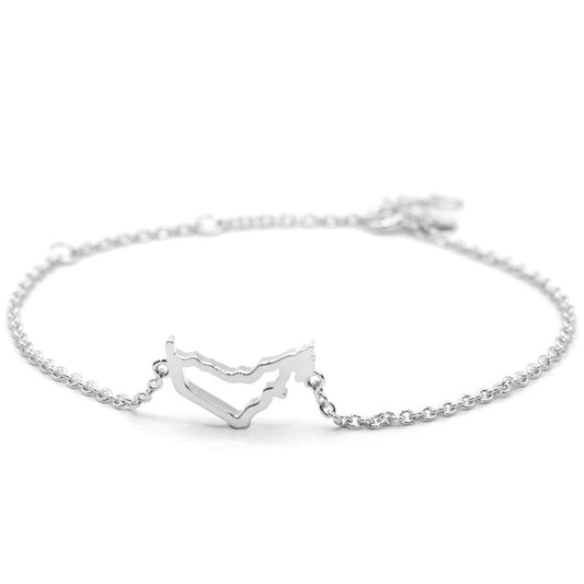 The map elegantly traces the outline of the country, representing your bond with its bustling cities, golden deserts, and stunning coastline. Feel the echoes of traditional souks, the allure of towering skyscrapers, and the warmth of Emirati hospitality. Let this bracelet serve as a keepsake of the place where your spirit finds inspiration and your dreams take flight.