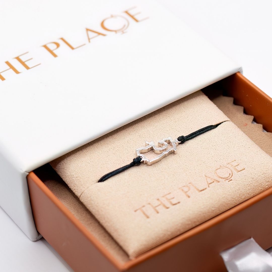 Capture the grandeur of Canada with our Canada Map Bracelet in sterling silver on a nylon cord, a tribute to the vast wilderness and welcoming cities that define this northern nation.