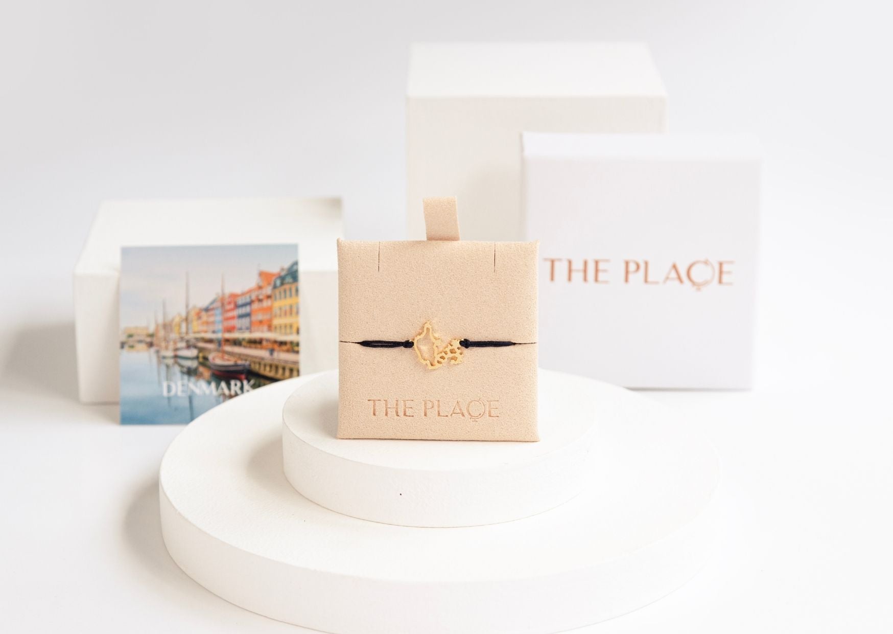 Celebrate the elegance and innovation of Denmark with our Denmark Map Bracelet in 18K gold vermeil on a nylon cord.