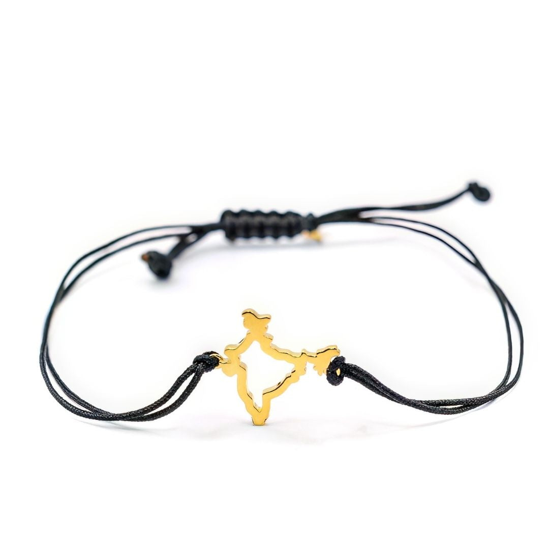 Embrace your connection to the vibrant landscapes and rich heritage of India with our India Map Bracelet in 18K yellow gold vermeil on a nylon cord.