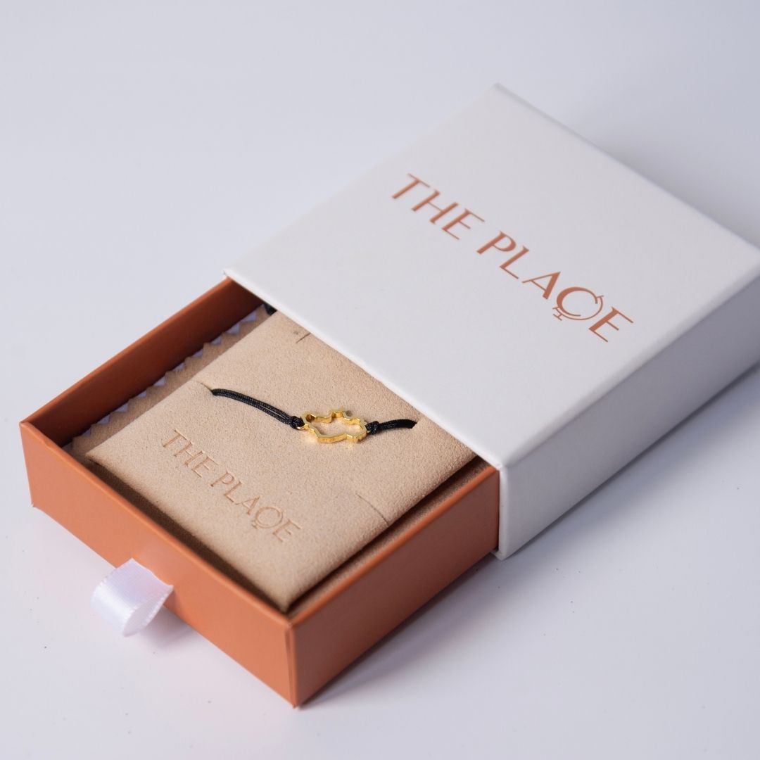 Embrace the enchanting beauty of the Emerald Isle with our Ireland Map Bracelet in 18K yellow gold vermeil on a nylon cord.