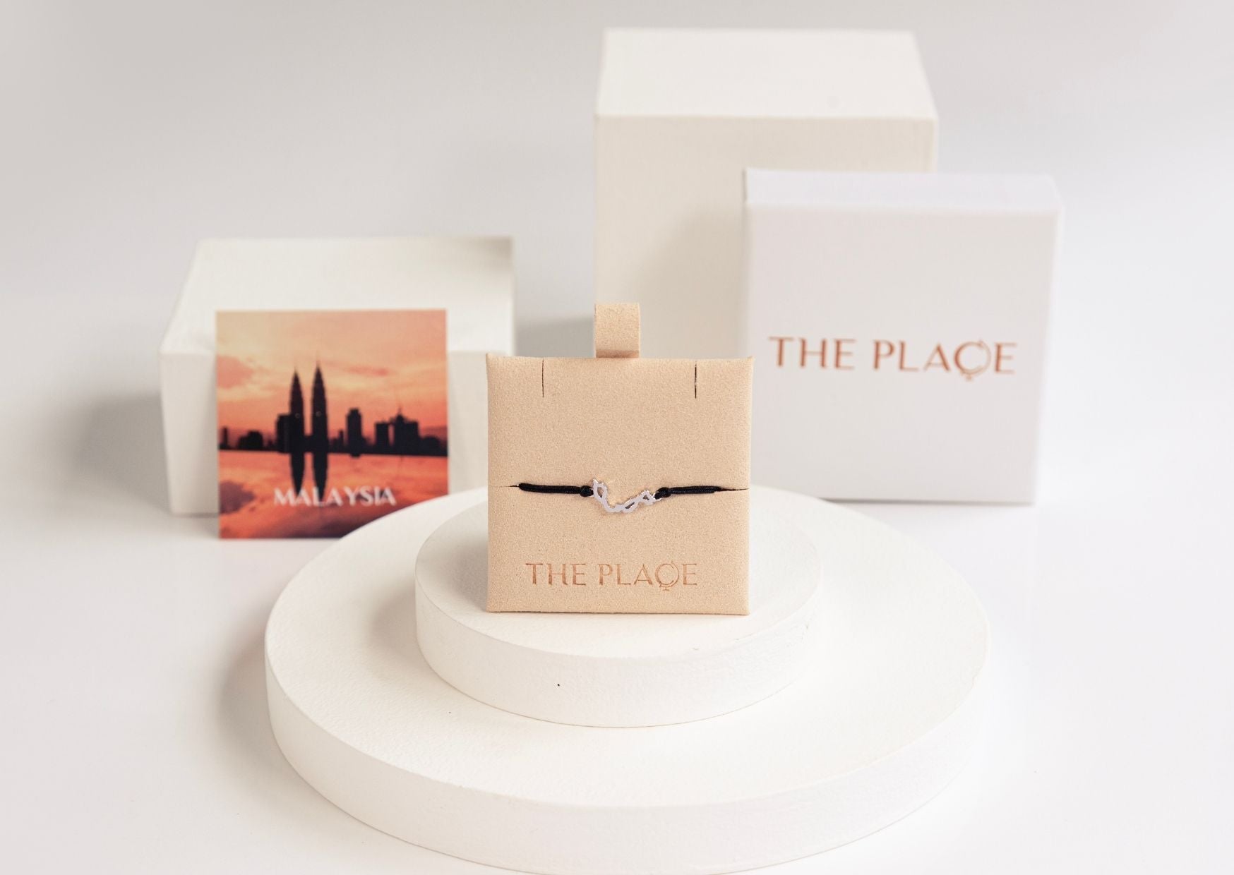 Capture the rich tapestry of Malaysia on your wrist with our Malaysia Map Bracelet in sterling silver on a nylon cord, a reflection of a country where diverse cultures converge.