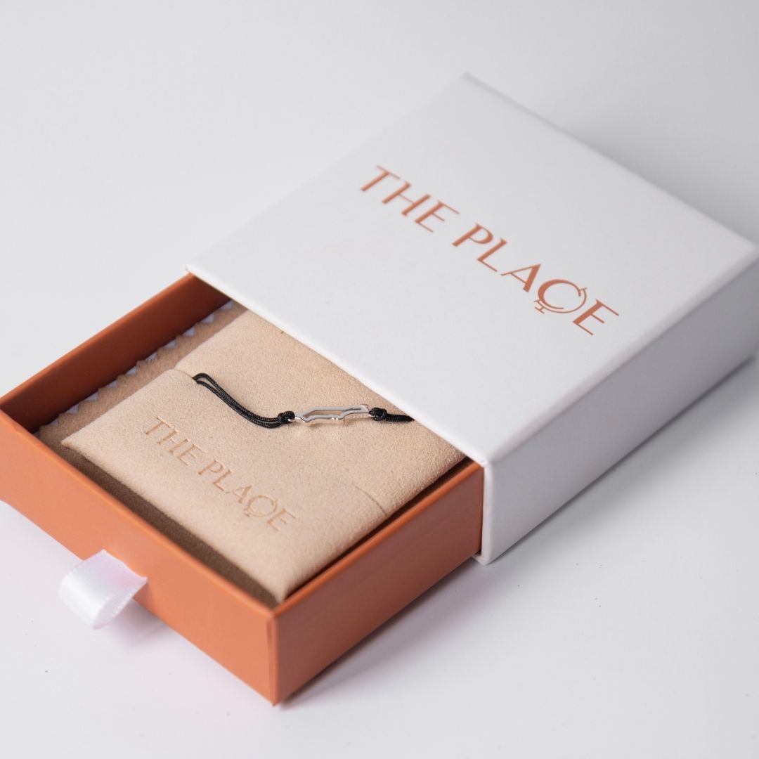 The map bracelet features a subtle outline of the map of Manhattan, New York City. The map is crafted in sterling silver on a strong nylon cord. The cord is fully adjustable, making our cord bracelets are suitable for both children and adults. The bracelet is suitable for sensitive skin.
