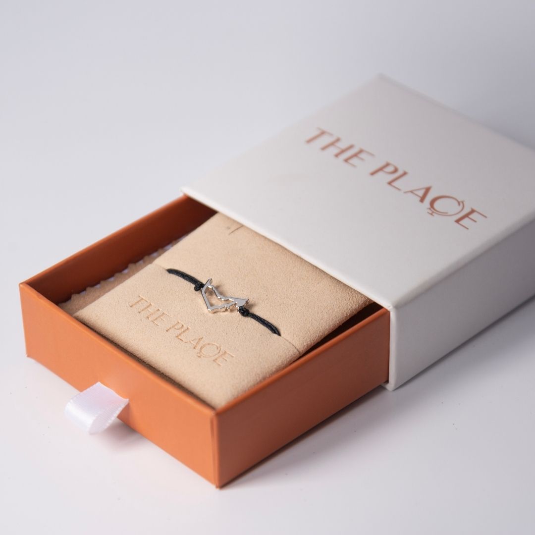 Celebrate your connection to the dynamic landscapes and vibrant culture of the United Arab Emirates with our UAE Map Bracelet in sterling silver on a nylon cord.